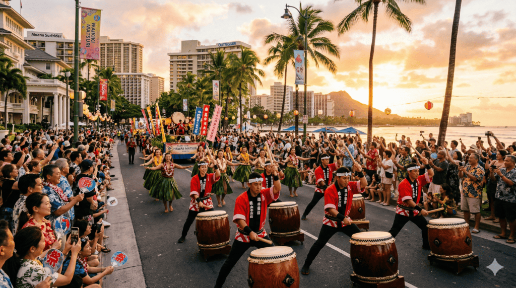 Every June, Waikiki turns into something most tourists never expect: a full-blown cultural festival where taiko drummers, hula dancers, and performers from across the Pacific Rim take over Kalākaua Avenue — for free. If your trip falls anywhere near June 12–14, 2026, you need to know about this.