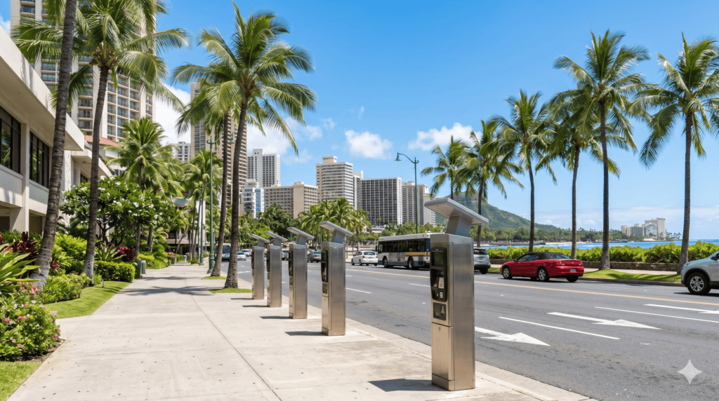 Street metering in Waikiki got a full upgrade when the city replaced broken 3G-era machines with new smart meters. The current rate is $3 per hour throughout Waikiki, enforced from 6:00 AM to 10:00 PM any day of the week. There is one useful exception: meters are not enforced on Sundays and state holidays, making those days your best shot at free street parking near the beach. After 10:00 PM on weekdays, many metered spots are also free until enforcement resumes at 6:00 AM — a legitimate hack for late-night arrivals.